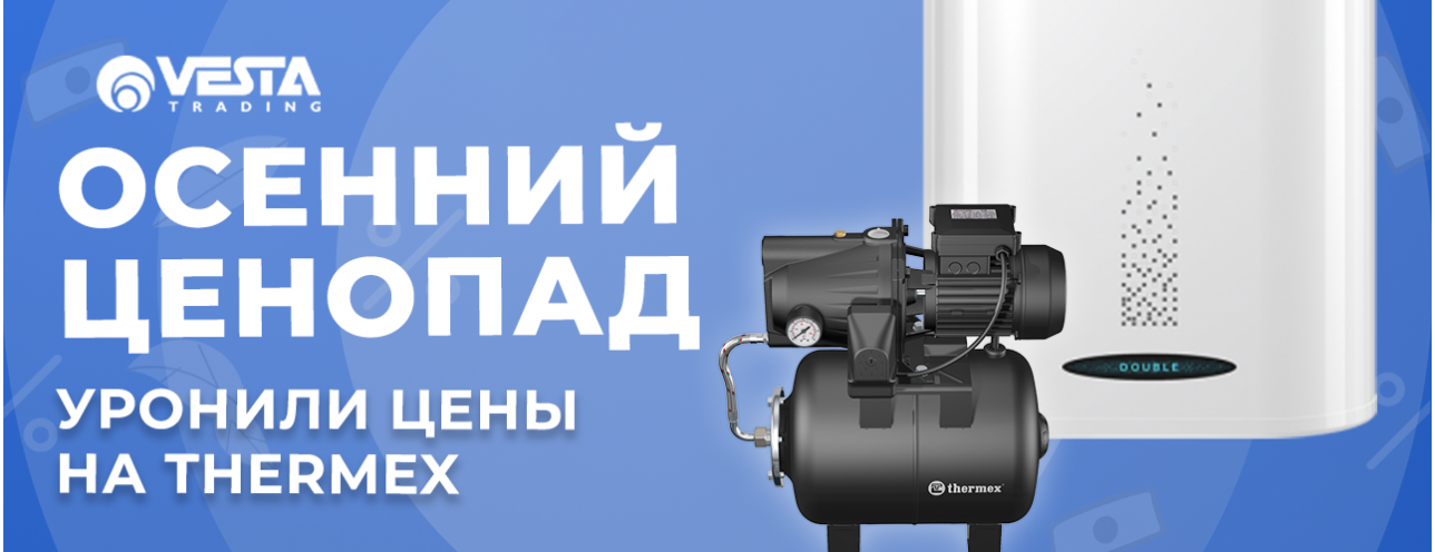 Уважаемые покупатели! С 01 по 30 ноября 2025 года в розничной сети "Веста Трейдинг" вас ждут специальные условия на покупку товаров THERMEX из подборки. Ждем вас в наших магазинах и на сайте www.vestatrade.ru..