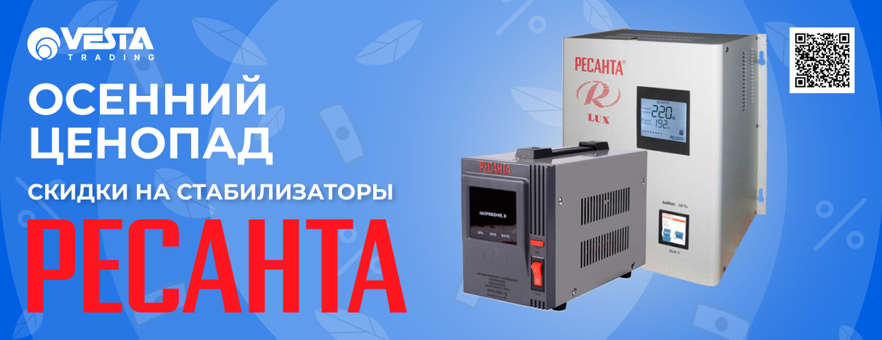 Уважаемые покупатели! В розничной сети "Веста Трейдинг" вас ждут специальные условия на покупку стабилизаторов РЕСАНТА из подборки. Ждем вас в наших магазинах и на сайте www.vestatrade.ru..