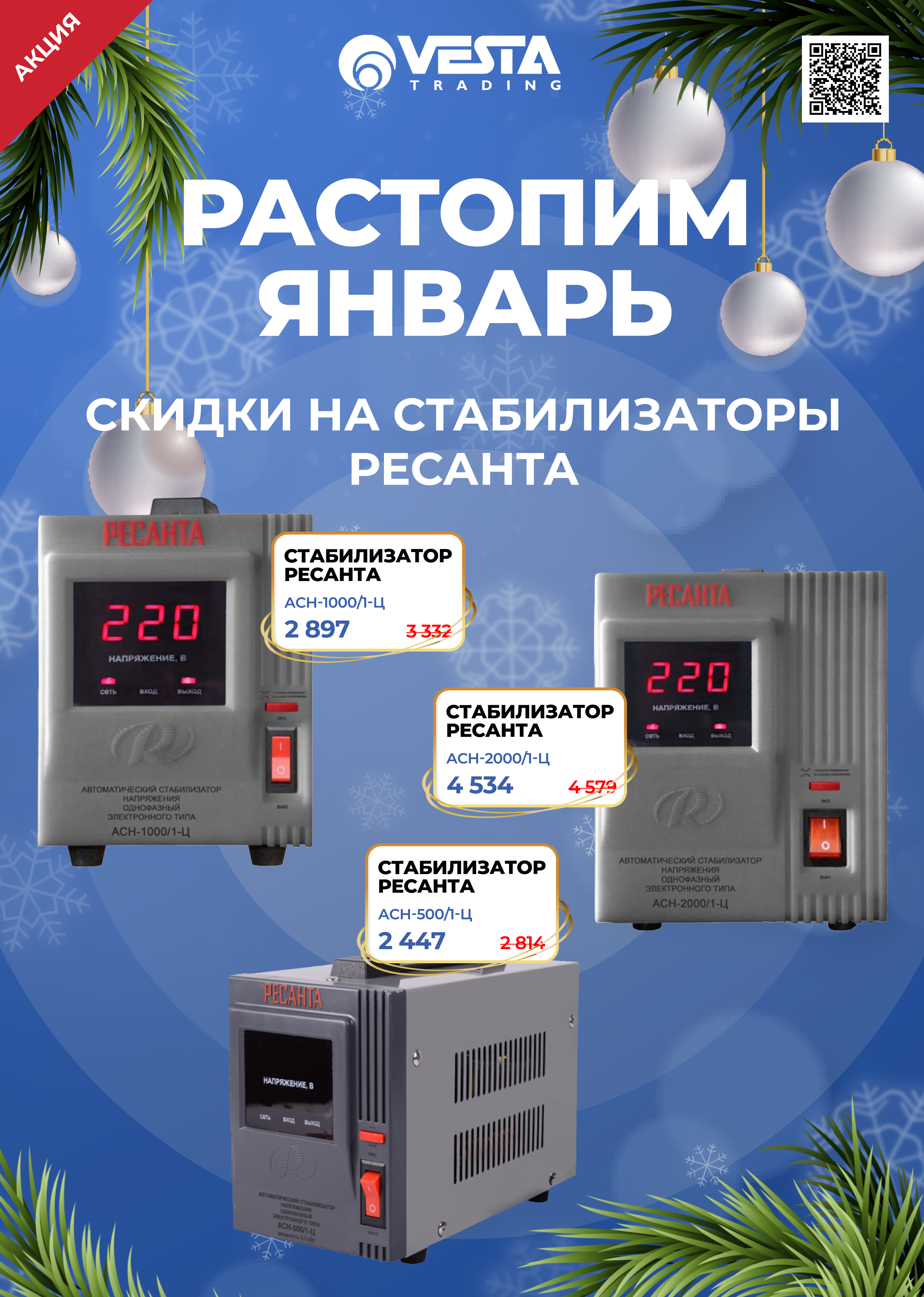 Уважаемые покупатели! В розничной сети "Веста Трейдинг" вас ждут специальные условия на покупку стабилизаторов РЕСАНТА из подборки. Ждем вас в наших магазинах и на сайте www.vestatrade.ru