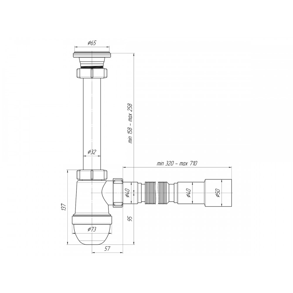 - ✓ Сифон подходит для большинства стандартных раковин, что облегчает выбор и установку.