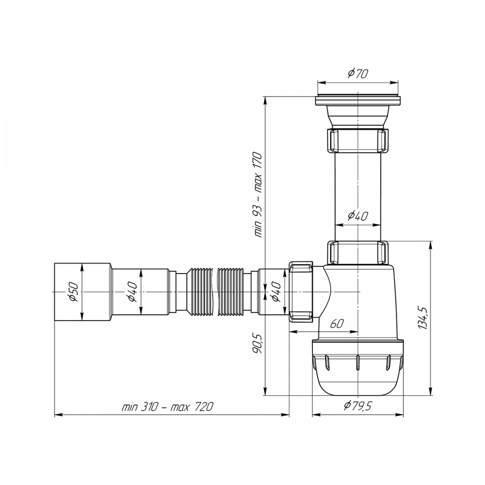 Сифон АНИ Пласт Грот A0115 — это современное и надёжное решение для организации слива воды в кухонной мойке. Модель оснащена гибкой трубой 40×40/50 мм, что обеспечивает простоту монтажа даже в ограниченном пространстве. Диаметр выпуска составляет 1 1/2 дюйма, а диаметр трубы — 40 мм, что делает этот сифон универсальным для большинства стандартных моек.