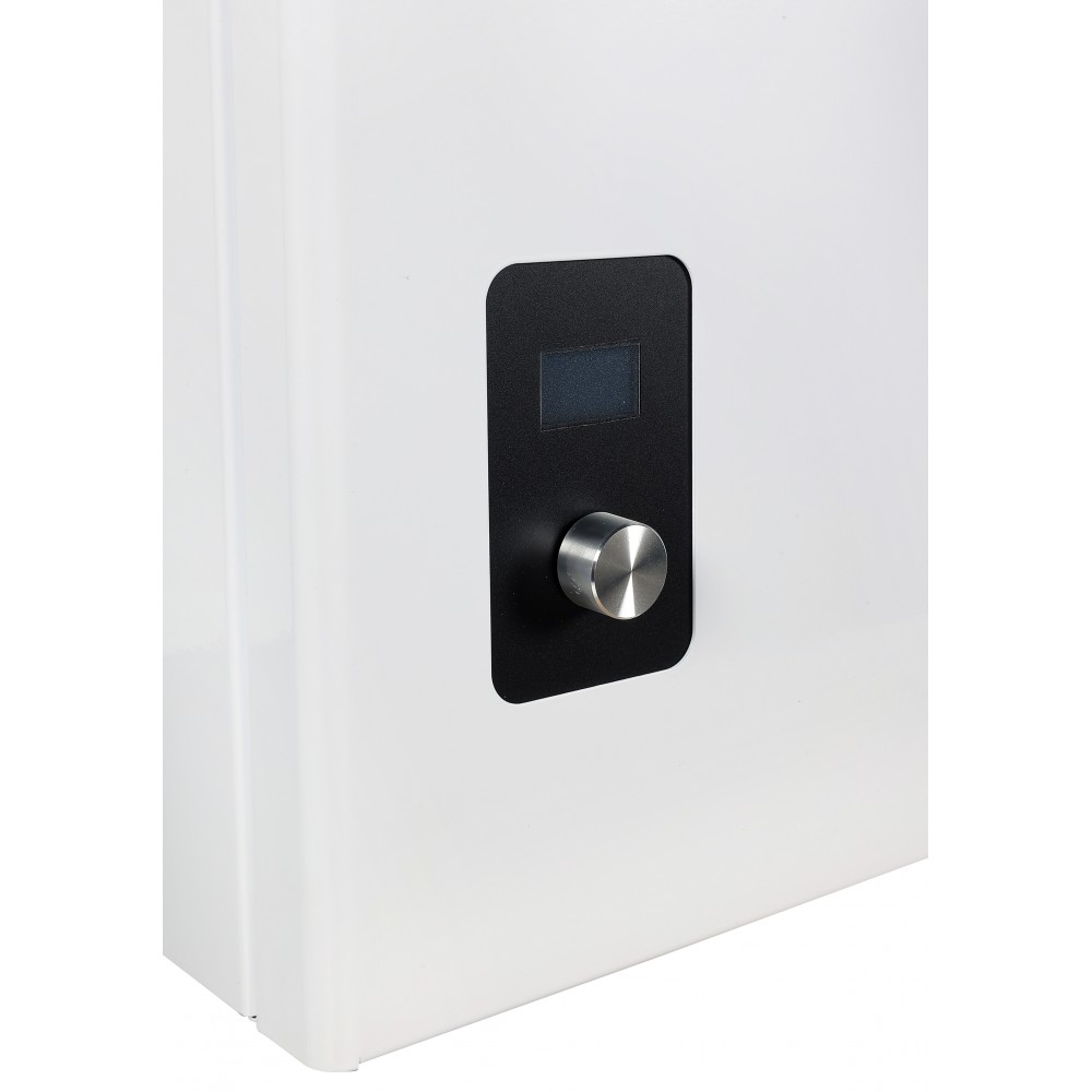 Доступны три режима: «Отопление», «Комнатный» и «Уличный». В «Комнатном» режиме котёл поддерживает температуру по датчику воздуха, в «Уличном» - корректирует работу с учётом уличной температуры. Погодозависимая автоматика поддерживает заданную температуру теплоносителя по выбранной кривой. Диапазон регулировки теплоносителя - от 8 до 85 °C; точность обеспечивается встроенным NTC-датчиком. Корпус теплоизолирован, ТЭНы выполнены в блочном исполнении из нержавеющей стали. Предусмотрена штатная возможность подключения стабилизатора напряжения (не менее 500 Вт) для защиты электроники. Гарантия - 12 месяцев, расширение до 24 месяцев доступно при регистрации котла на сайте производителя.
