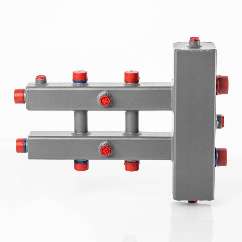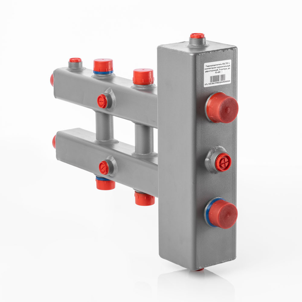 Серия VTc.100.SN включает в себя горизонтальные гидроразделители с возможностью подключения трех и пяти контуров.