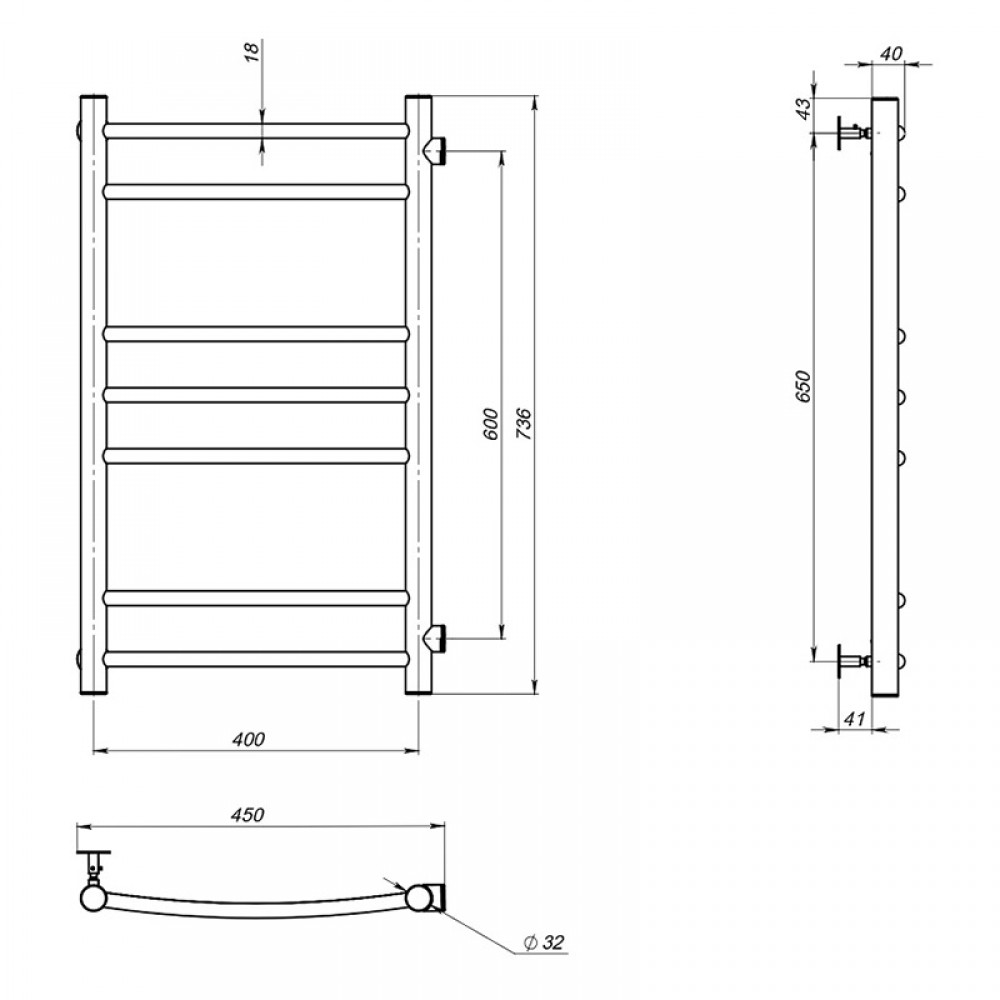 Полотенцесушитель MELODIA Classica 40*80*1" П7 м/о 60 бок.подкл. MTRCA4080.