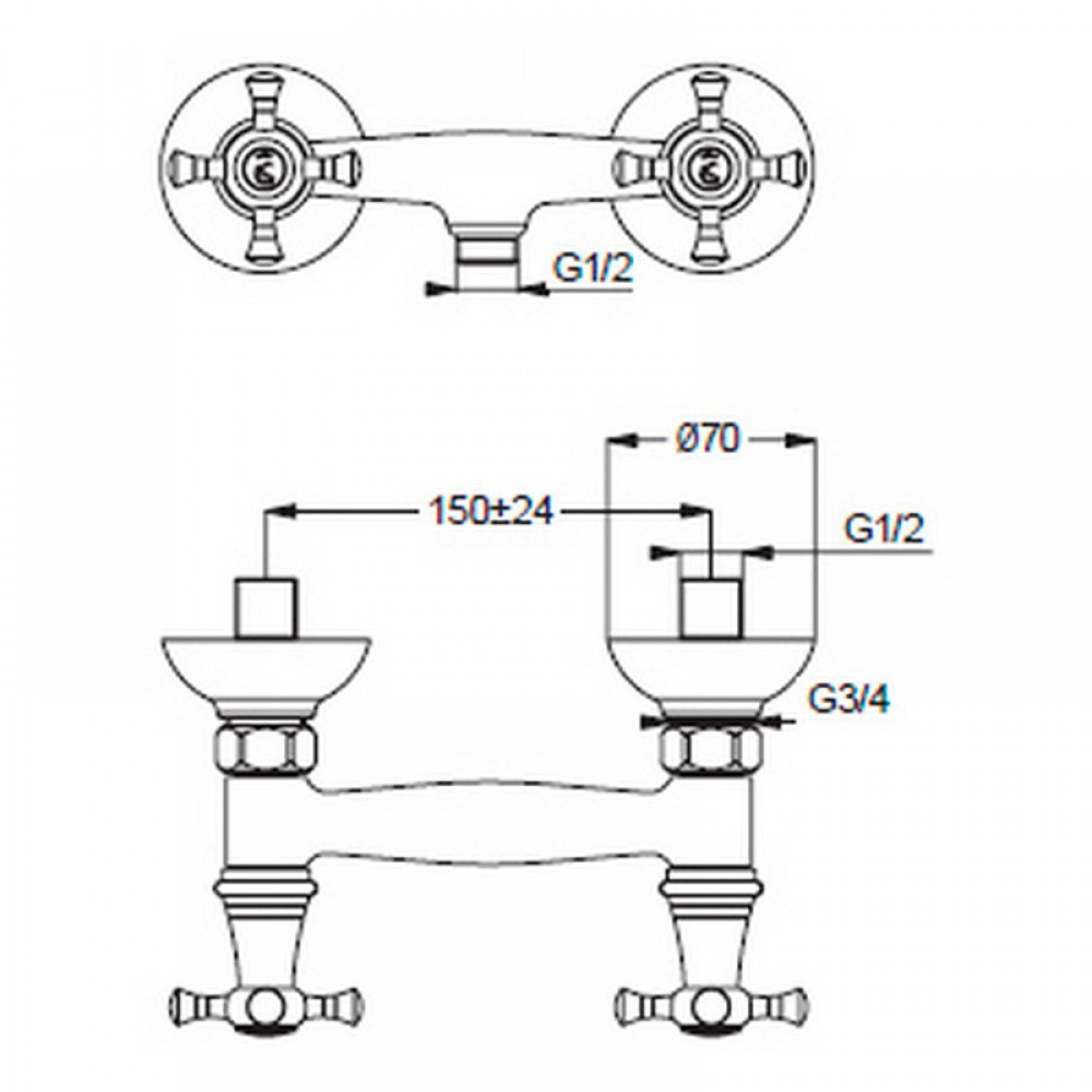 - ✓ Межцентровое расстояние: 150 мм