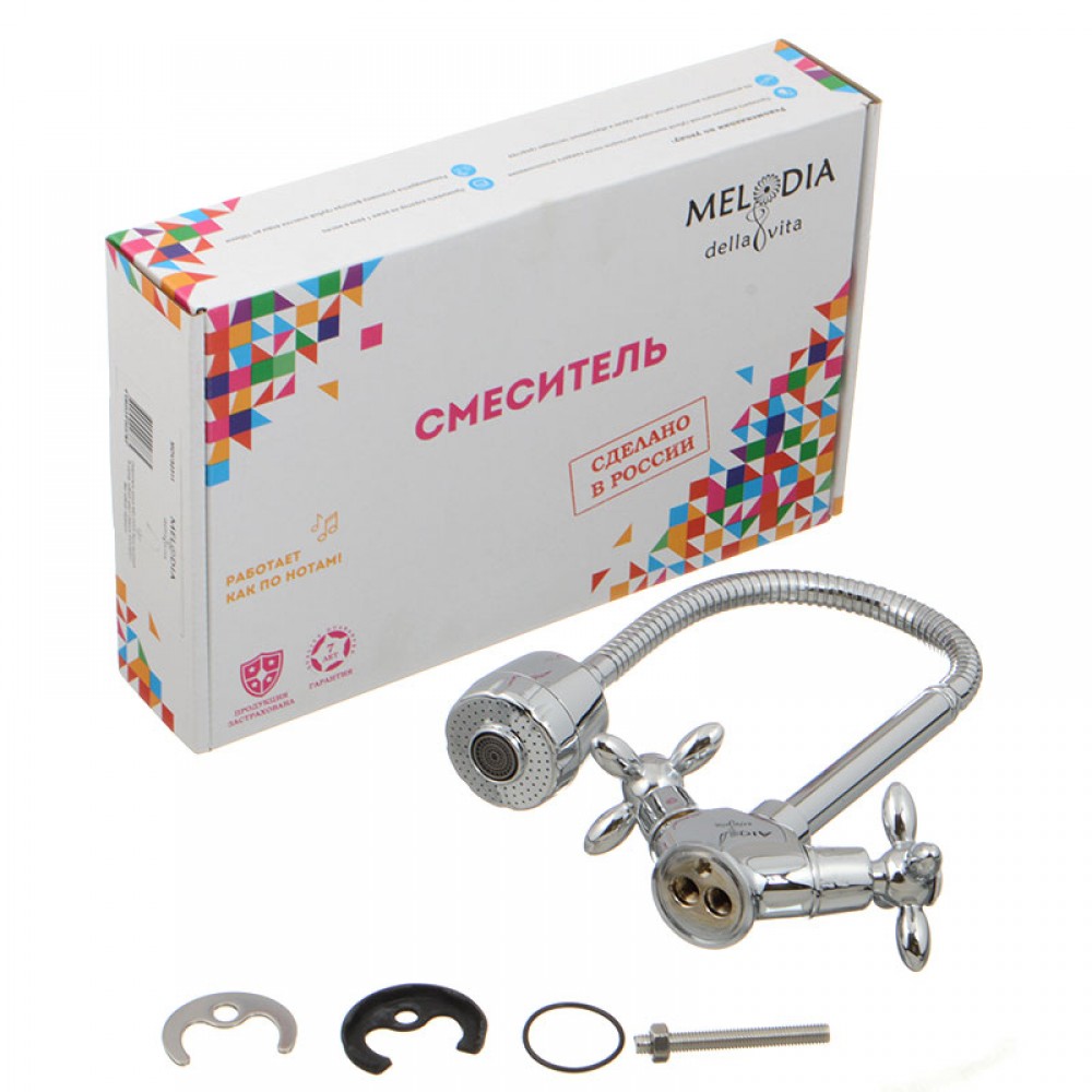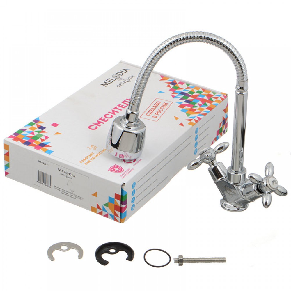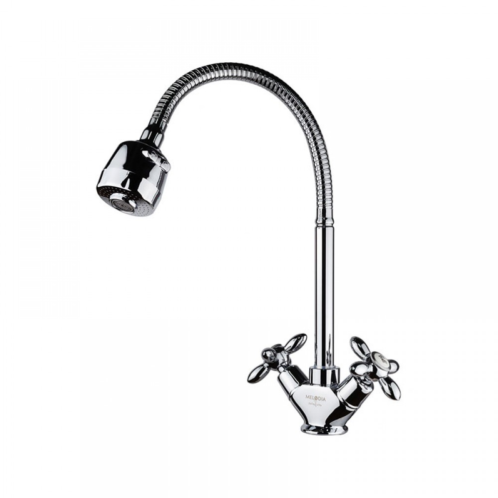 Двухвентильный кухонный смеситель MELODIA Retro MDV32311 оснащен гибким высоким изливом и классическими крестообразными маховиками. Сантехника в ретро-стиле объединяет винтажный дизайн с современной практичностью, позволяя комфортно использовать кран для мойки посуды любых габаритов.