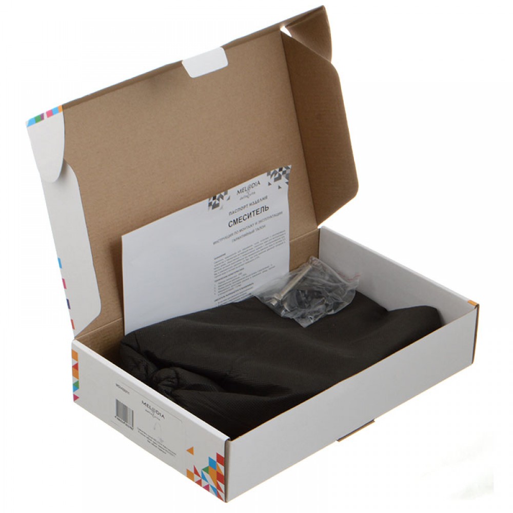 Смеситель фиксируется на раковине при помощи крепежной шпильки. Модель поставляется без гибких подводящих шлангов, что требует их отдельного приобретения при монтаже.