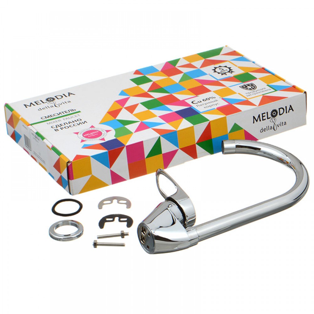 Смеситель для кухни MELODIA Classica MDV40715 — это традиционная водоразборная арматура, адаптированная под современные технические стандарты. Высокий R-образный излив поворотного типа позволяет свободно манипулировать громоздкой посудой и направлять струю в любую точку раковины, что особенно полезно при наличии двойной кухонной мойки.