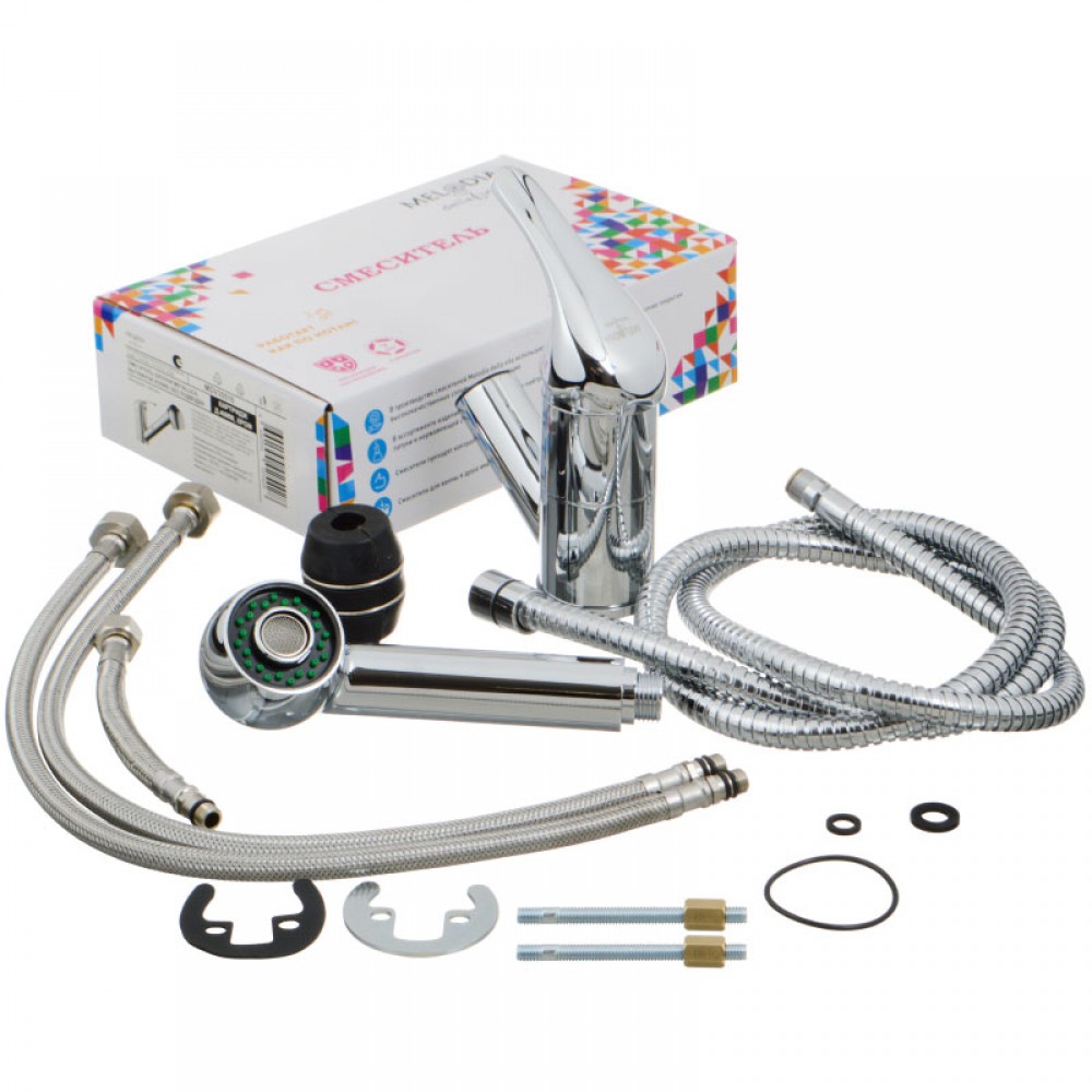 Хромированное покрытие защищает металл от воздействия моющих средств. Смеситель поставляется с полным набором крепежа и заводской гибкой подводкой для быстрого подключения к водопроводной сети.