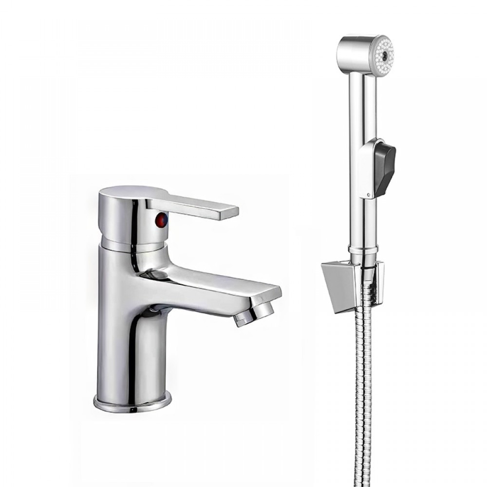 Принцип работы прост: при открытии рычага вода сначала поступает в излив раковины, а при нажатии кнопки на лейке гигиенического душа (входит в комплект) поток автоматически перенаправляется в шланг. Корпус сантехники изготовлен из прочной латуни, что исключает ржавчину и протечки.
