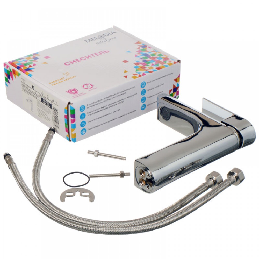 Однорычажный смеситель для умывальника MELODIA Waltz MDV30120 оснащен низким фиксированным изливом и поворотным аэратором. Кран для раковины привлекает внимание современным геометричным дизайном корпуса и удобной плоской рукояткой из цинкового сплава. Такое устройство гармонично впишется в интерьер ванной комнаты и обеспечит комфорт при ежедневных гигиенических процедурах.