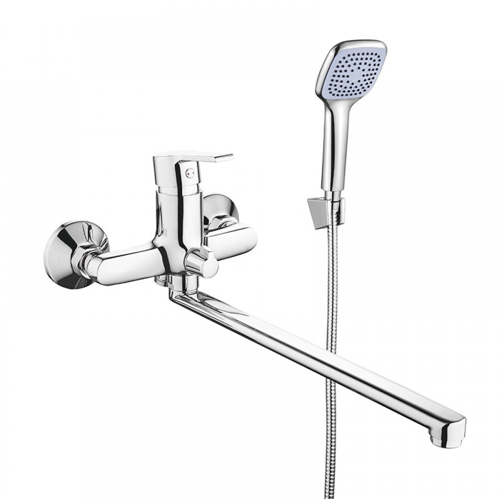 Однорычажный механизм управления обеспечивает быструю настройку комфортной температуры жидкости буквально одним движением руки. Интегрированный дивертор позволяет легко переключать поток между основным изливом и ручной душевой лейкой, входящей в комплект поставки оборудования.