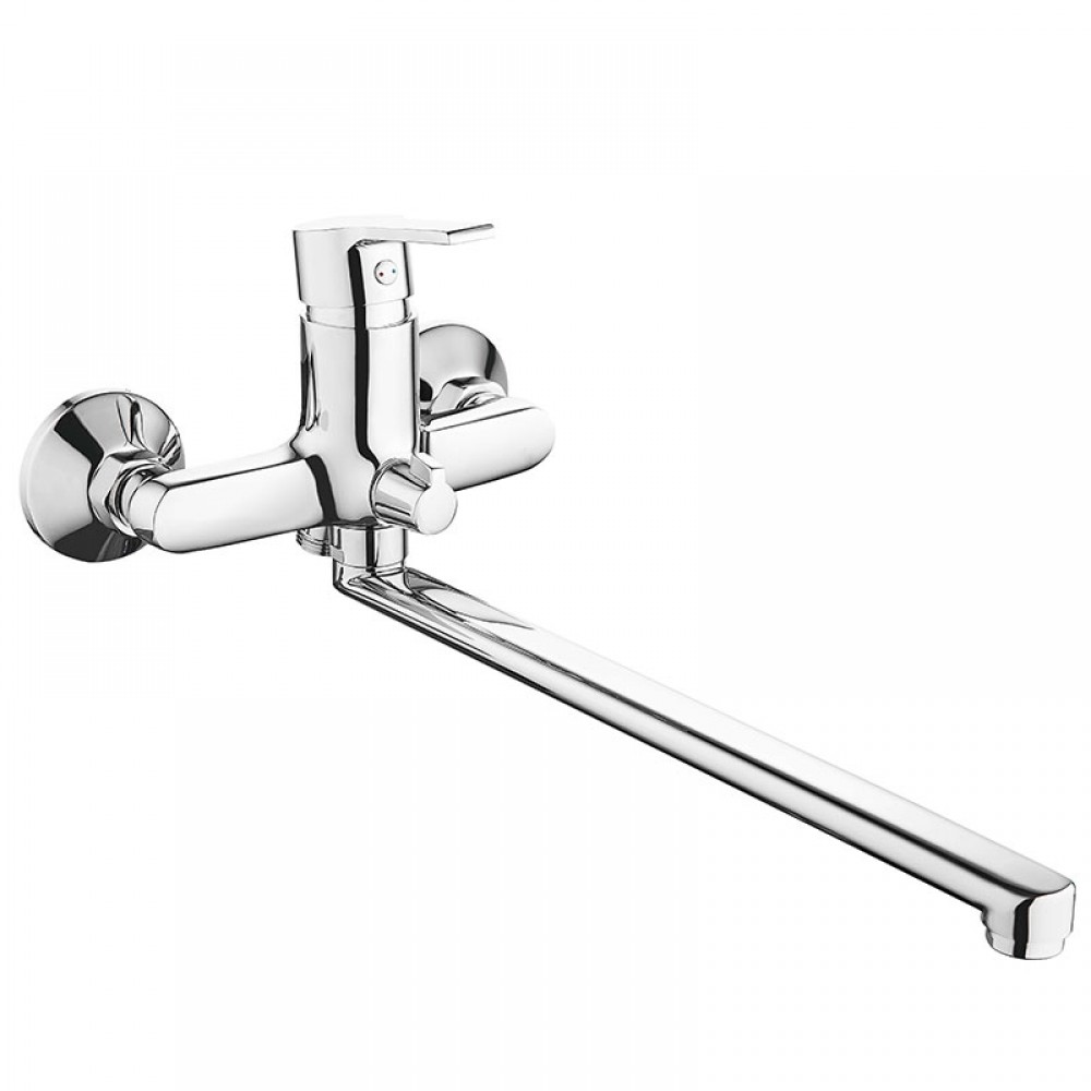 Смеситель для ванны MELODIA Aria MDV35741 с длинным изливом 350 мм представляет собой классическую водоразборную арматуру для установки в жилых санузлах. Благодаря увеличенной длине поворотного гусака, данный сантехнический прибор может поочередно обслуживать чашу ванны и расположенную рядом раковину, что оптимизирует использование пространства.