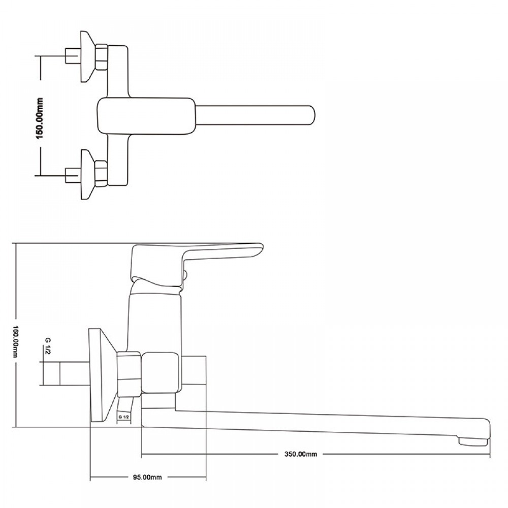 - ✓ Межцентровое расстояние: 150 мм
