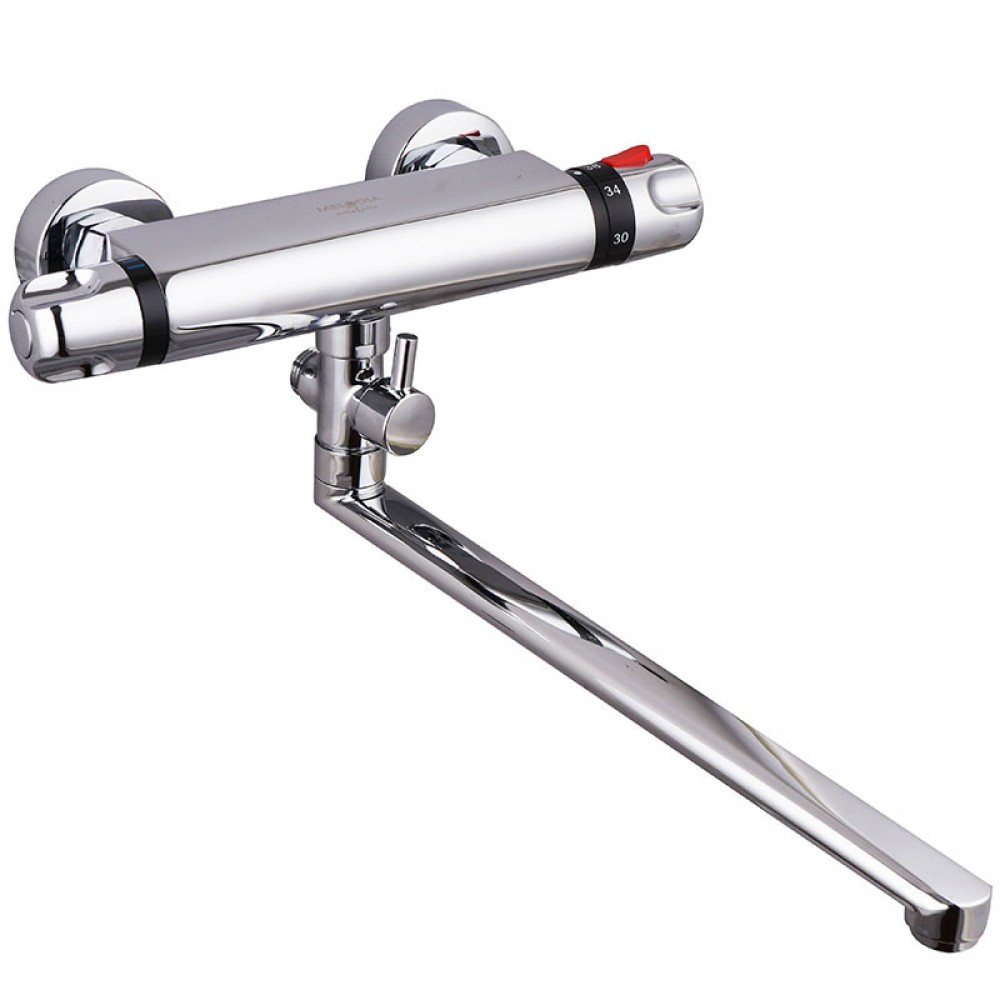 Смеситель для ванны MELODIA Rock MDV32004 — это передовая термостатическая водоразборная арматура, оснащенная длинным поворотным изливом (350 мм). Использование термостата позволяет один раз настроить комфортную температуру воды и больше не возвращаться к этой регулировке, так как умный механизм будет самостоятельно компенсировать изменения давления в трубах.