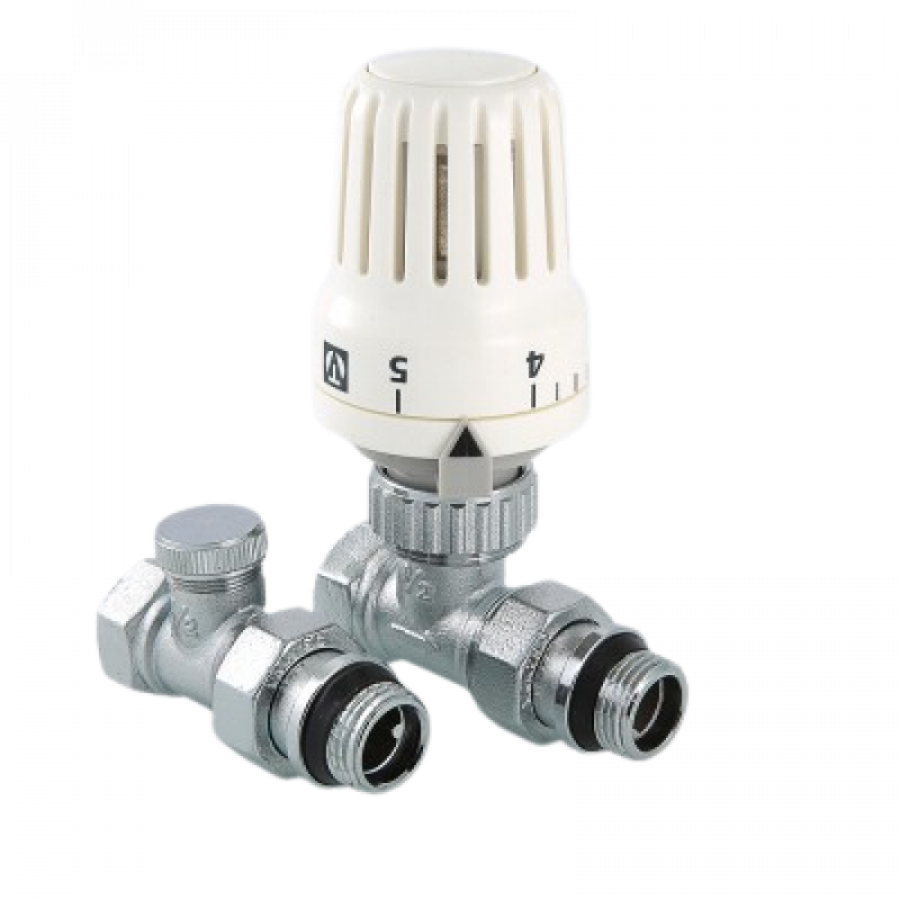 Полное наименование: Комплект терморегулирующего оборудования для радиатора, прямой 1/2" (термостатическая головка, термостатический клапан, запорный клапан)