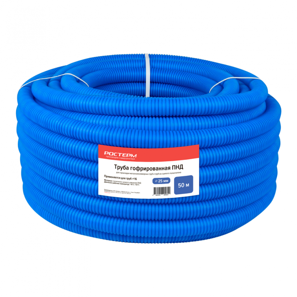 Обращаем ваше внимание, что кожух гофрированный ПНД РОСТерм 25 мм синий (под 16 трубу) 50 м 25CВ/50 продаётся ТОЛЬКО бухтами 50 м!