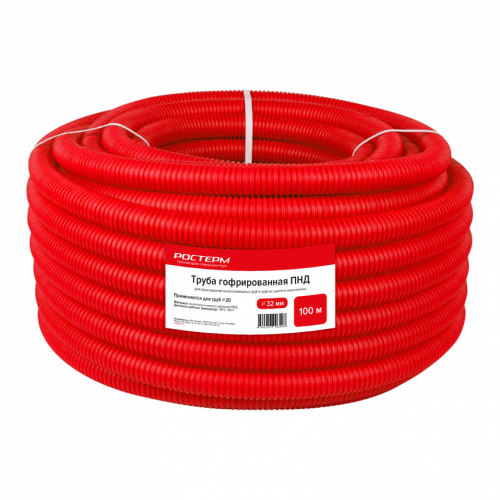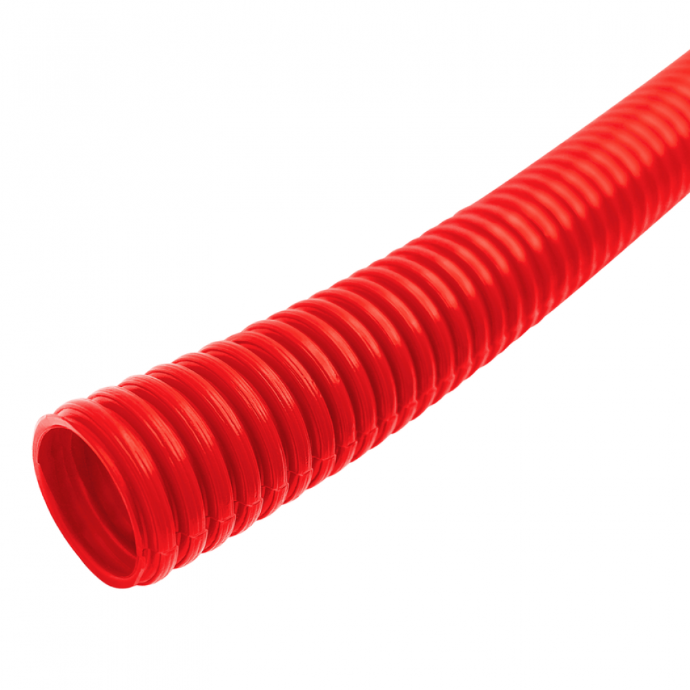 Труба гофрированная ПНД d32 мм 100 м красная изготовлена из полиэтилена низкого давления (ПНД) диаметром 32 мм, для полимерных труб диаметром 20 мм, применяется преимущественно для скрытого монтажа в бетонной стяжке для горизонтальных систем отопления, водоснабжения и систем поверхностного обогрева. Труба гофрированная используется как защитный кожух для системы водоснабжения и отопления от механических повреждений, воздействия внешней среды и обеспечивает компенсацию температурного расширения трубопроводов в стяжке.Преимущества: